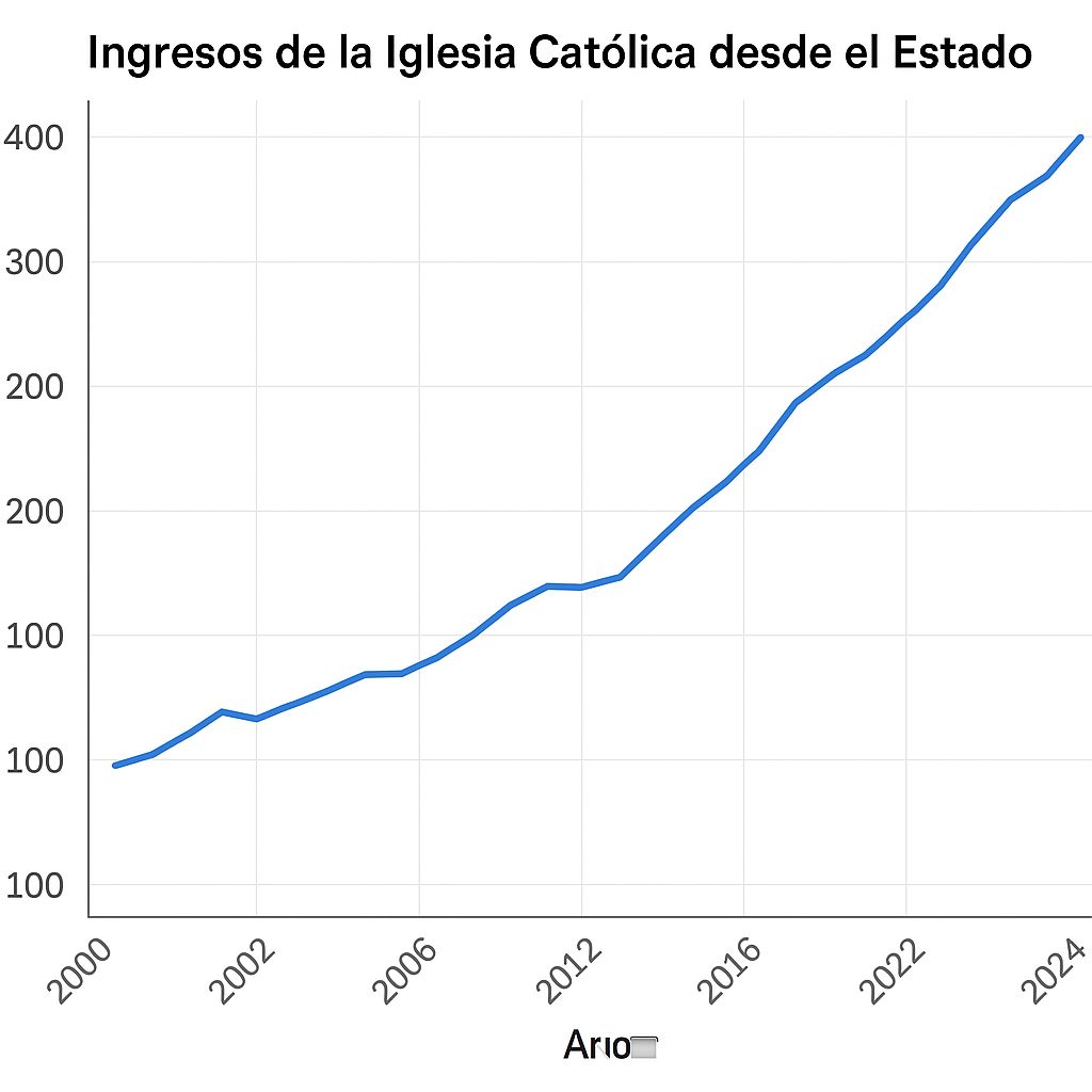 Aquí tienes una lista aproximada de los ingresos anuales de la Iglesia Católica española desde el Estado, basados en datos disponibles de memorias anuales y reportes periodísticos. No todos los años tienen cifras públicas exactas, pero se incluyen los datos más representativos: